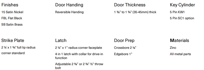 - Adjustable 2⅜” – 2¾” (60-70mm) backset